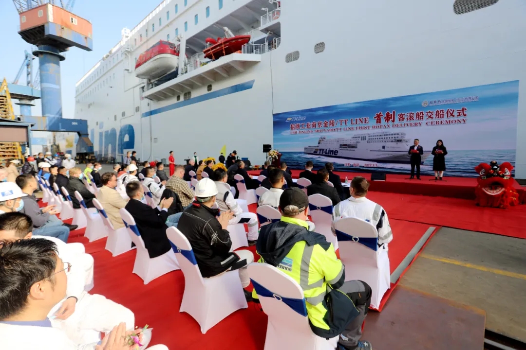 2022年3月7日,Nils Holgersson號(hào)最新一代綠色環(huán)保郵輪級(jí)客滾船提前順利交付至德國(guó)TT-Line船東。該項(xiàng)目由招商工業(yè)南京金陵船廠建造,內(nèi)裝總包工程由德國(guó)R&M集團(tuán)瑞瑪公司的中外員工共同完成。