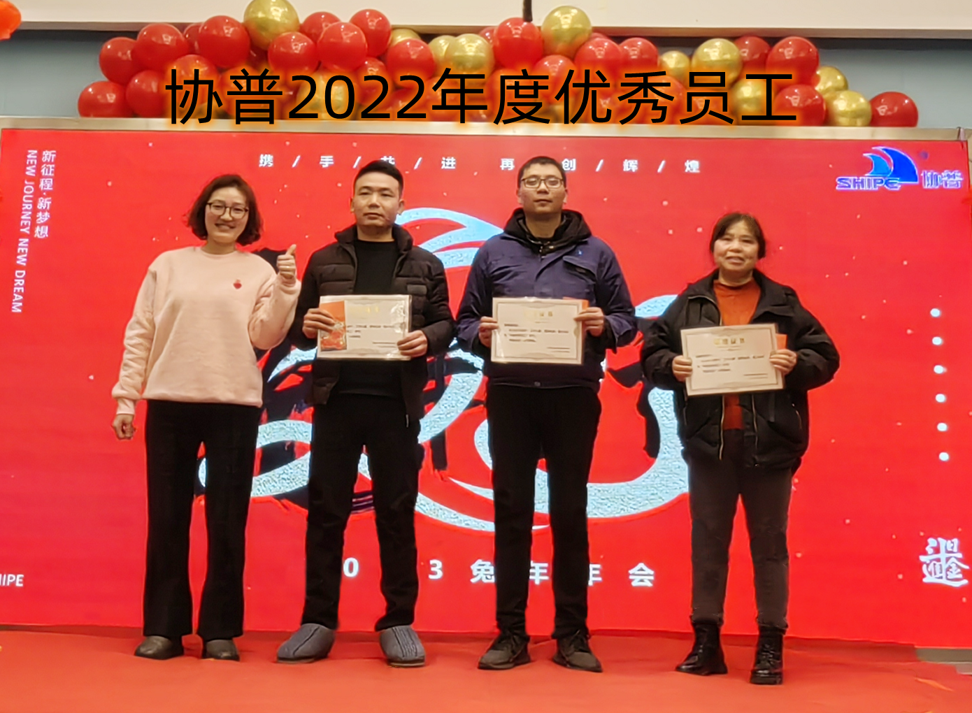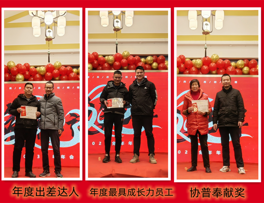 趙總致辭后,公司為2022年度表現(xiàn)優(yōu)異的團隊和個人進行了表彰。人才是公司生存和發(fā)展之本。公司發(fā)展的每一步都離不開每個協(xié)普人的努力和付出。本年度公司共評選出三名優(yōu)秀員工——陶海基、楊剛、徐金鳳,“2022年度突出貢獻(xiàn)獎”——張傳東、桂佳俊,“2022年度敬業(yè)獎”——陳阿龍,“年度宣傳小能手”——宋玉秋;“協(xié)普年度出差達(dá)人”——胡金龍,“年度最具成長力員工”——王傳銀,“5S進步團體”——技術(shù)部、車間鉚焊班,“質(zhì)量進步團體”——質(zhì)量部,“協(xié)普奉獻(xiàn)獎”——劉庭玉。